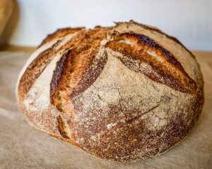 Dé klassieker van bakker Menno en ook één van onze favorieten! “Ik vind dit het échte brood.” Dit brood wordt door vanMenno gemaakt van op stenen gemalen biologisch tarwemeel, water en zeezout uit de Guérande en de eigen desemcultuur van Menno (zonder toegevoegde gist). De karakteristieke, stevige korst is knapperig en beschermt het brood tegen uitdrogen. Dit is brood waar u een stuk van af wilt scheuren om te eten bij de borrel of heerlijk kunt serveren bij een verwarmende soep of bij een salade. Of ’s ochtends van kunt genieten bij het kerstontbijt!