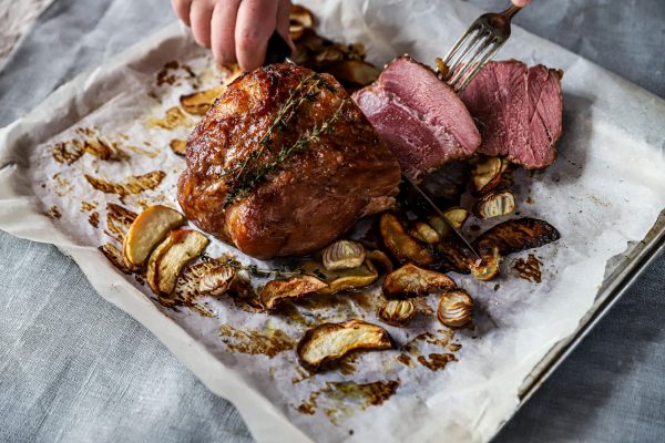 Snijd de bovenkant met een ruitjespatroon. De ham kan geglaceerd of gekruid worden, of zo de oven in. Serveer de beenham in dikke plakken. Heerlijk met een romige aardappelpuree en bloemkoolgratin.