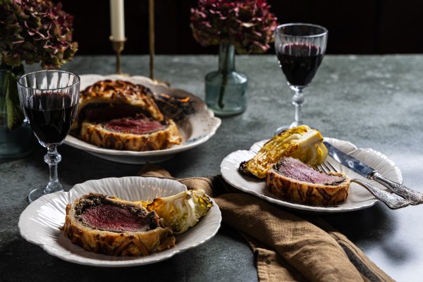 Deze beef wellington is het ideale hoofdgerecht voor Kerst : botermalse rosé gegaarde ossenhaas als een cadeautje verpakt in krokant roomboterdeeg. Onze slager heeft speciaal voor jullie de delicate ossenhaas al omwikkeld met een duxelles van paddenstoelen en drooggezouten gerookt buikspek van Baambrugse big. Al zeggen we het zelf, prachtig qua smaak en het ziet er enorm aantrekkelijk uit – een echt pronkstuk voor op de kersttafel. Alleen het aansnijden van deze klassieker is al een feest op zich! En het allermooiste? U hoeft ‘m alleen nog in de oven te schuiven – kunt U mooi in de tussentijd aan tafel aanschuiven!